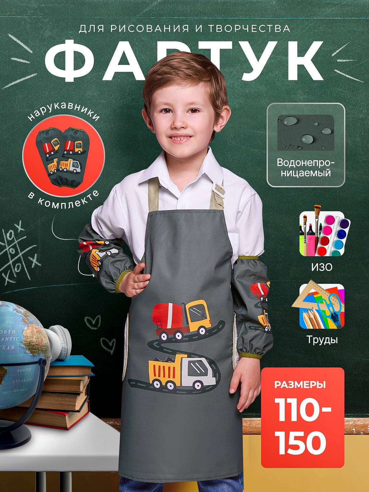 СохранитьФартук для рисования детский, зеленый с машиной (с мягкими карманами), размер M (130) интересное: