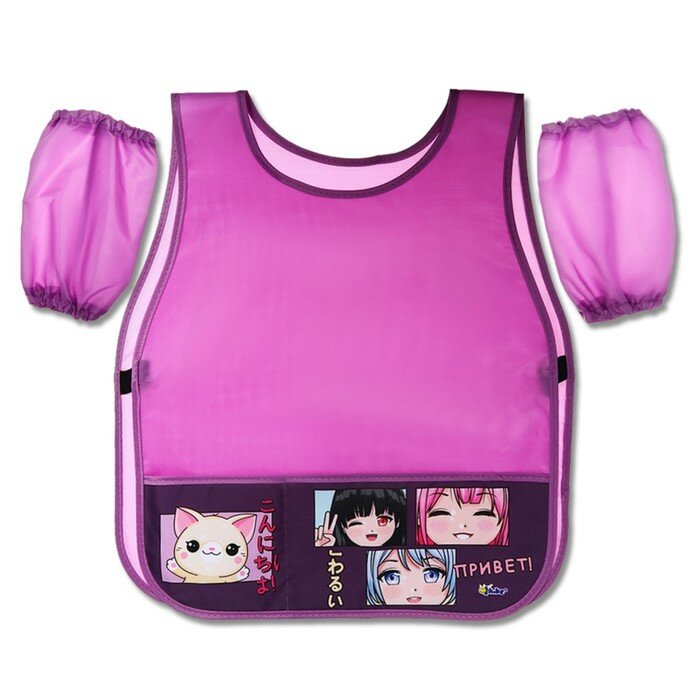 Фартук-накидка для детского творчества (Оникс) арт ФН-2-20 c карманом и нарукавниками Аниме друзья 475х410мм интересное: