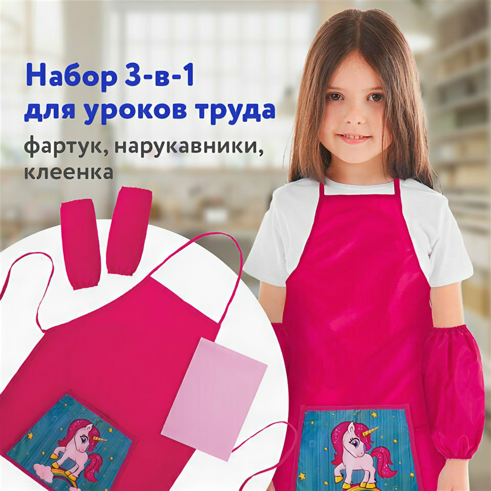 Купить Набор для уроков труда юнландия клеенка ПВХ фартук с нарукавниками "Neon unicorn", 2 шт