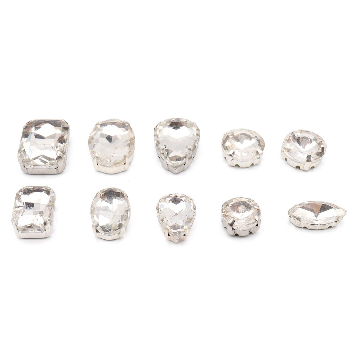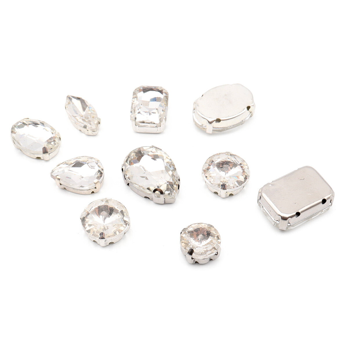 Купить Хрустальные стразы в металлических цапах, форма страз: микс, белый, 10 шт (упак)
