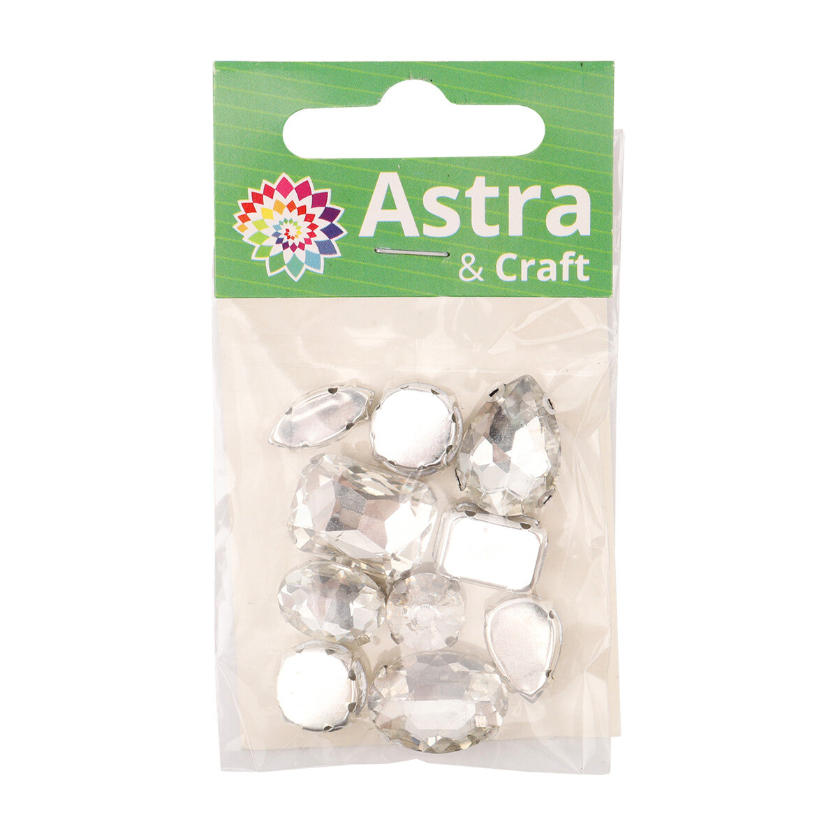 Хрустальные стразы в металлических цапах, Astra&Craft, МФ-1, форма страз микс, белый, 10 шт