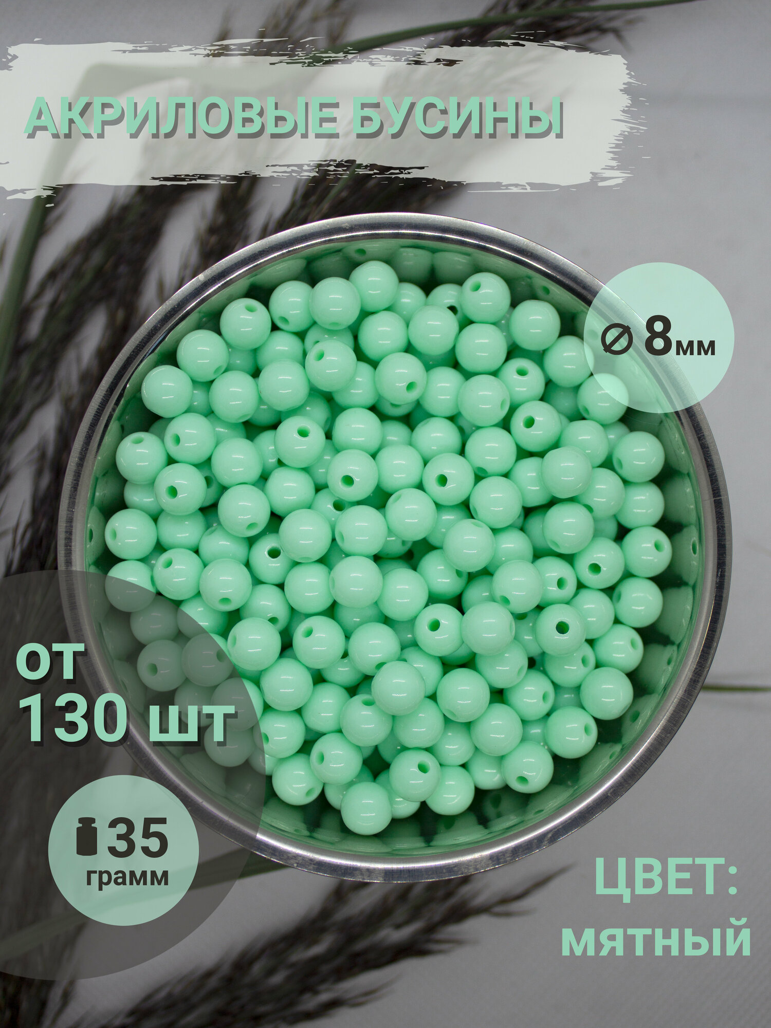 50 г. Круглые акриловые бусины 8 мм. Мятный
