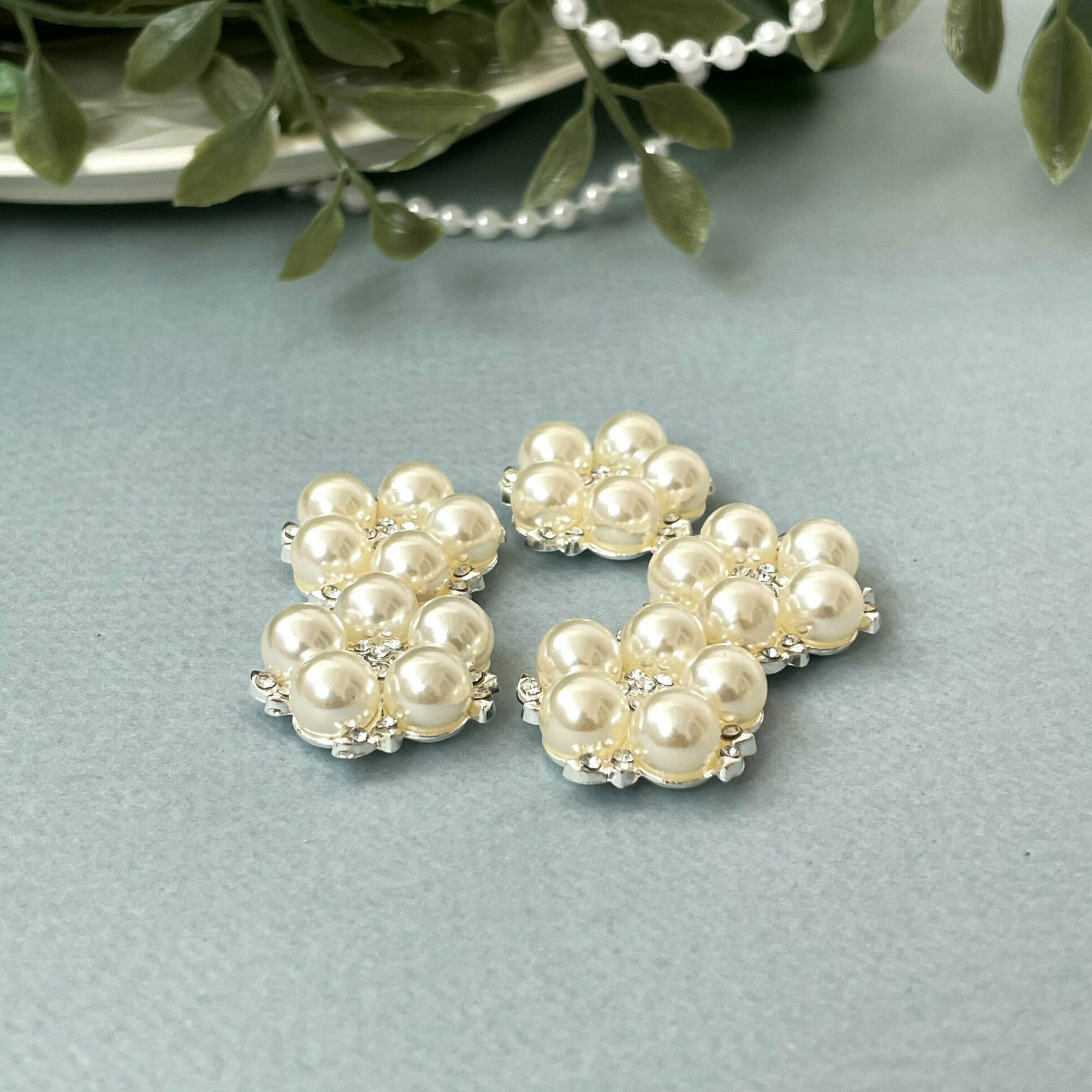 Купить Кабошон - украшение цветок со стразами и жемчужинами круглое, цвет Белый жемчужный, диаметр 2,4 см, металлическое, 5 шт.