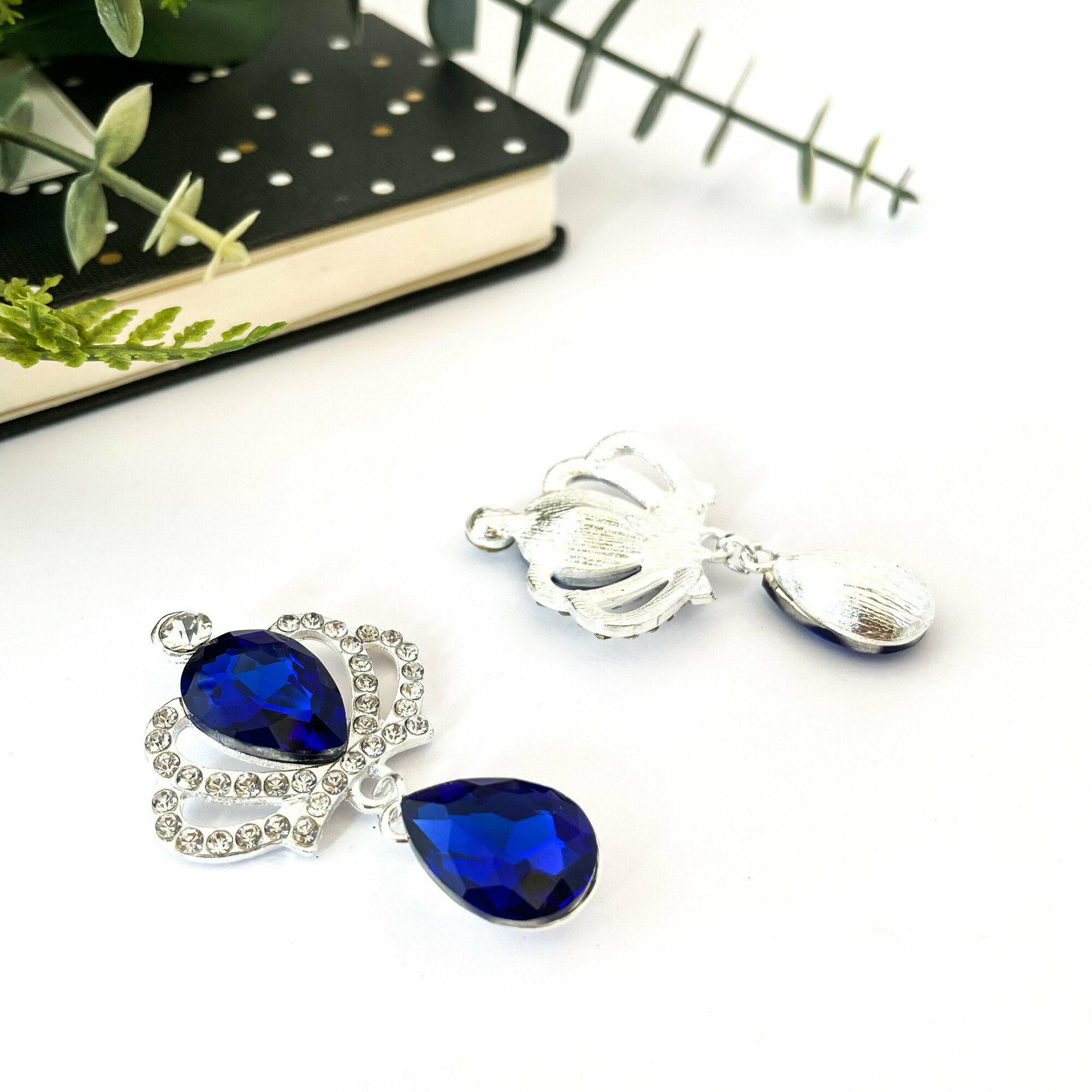Купить Кабошоны ювелирные со стразами и подвеской, Корона, цвет Синий/серебро, набор 2 шт.