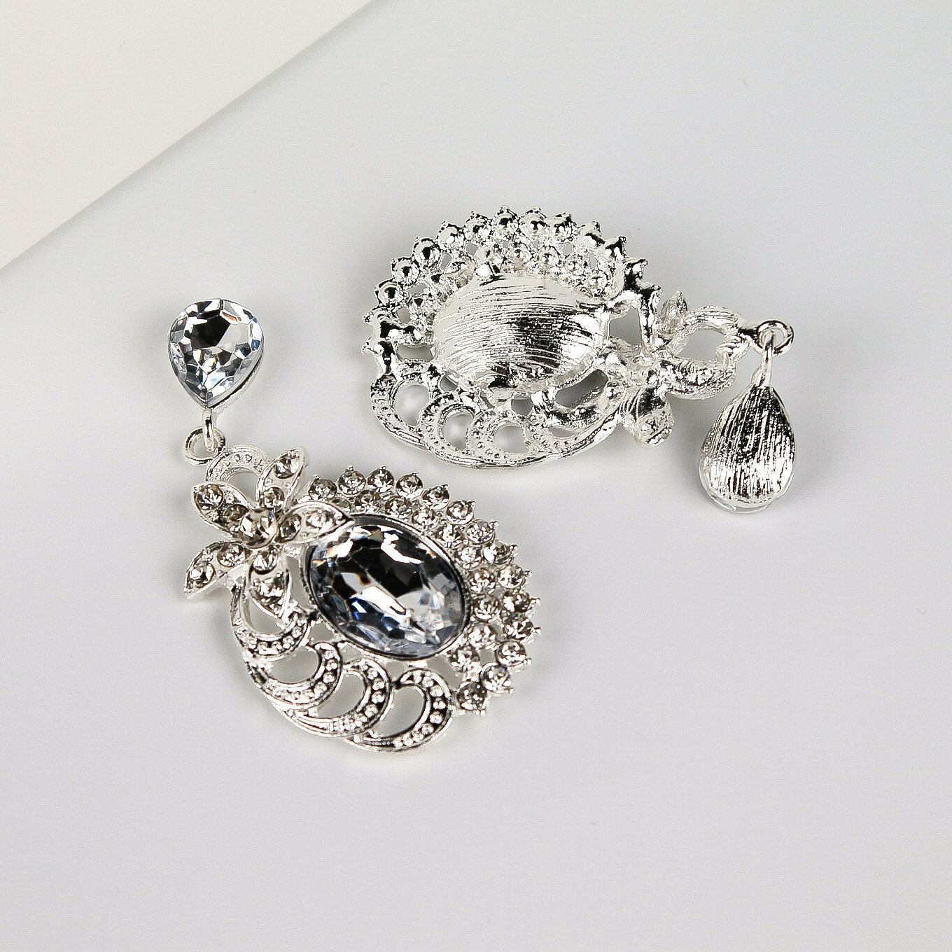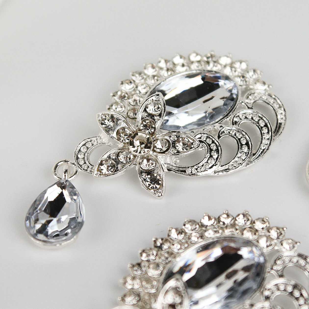 Кабошоны ювелирные со стразами и подвеской капля, прозрачный/серебро набор 5 шт.