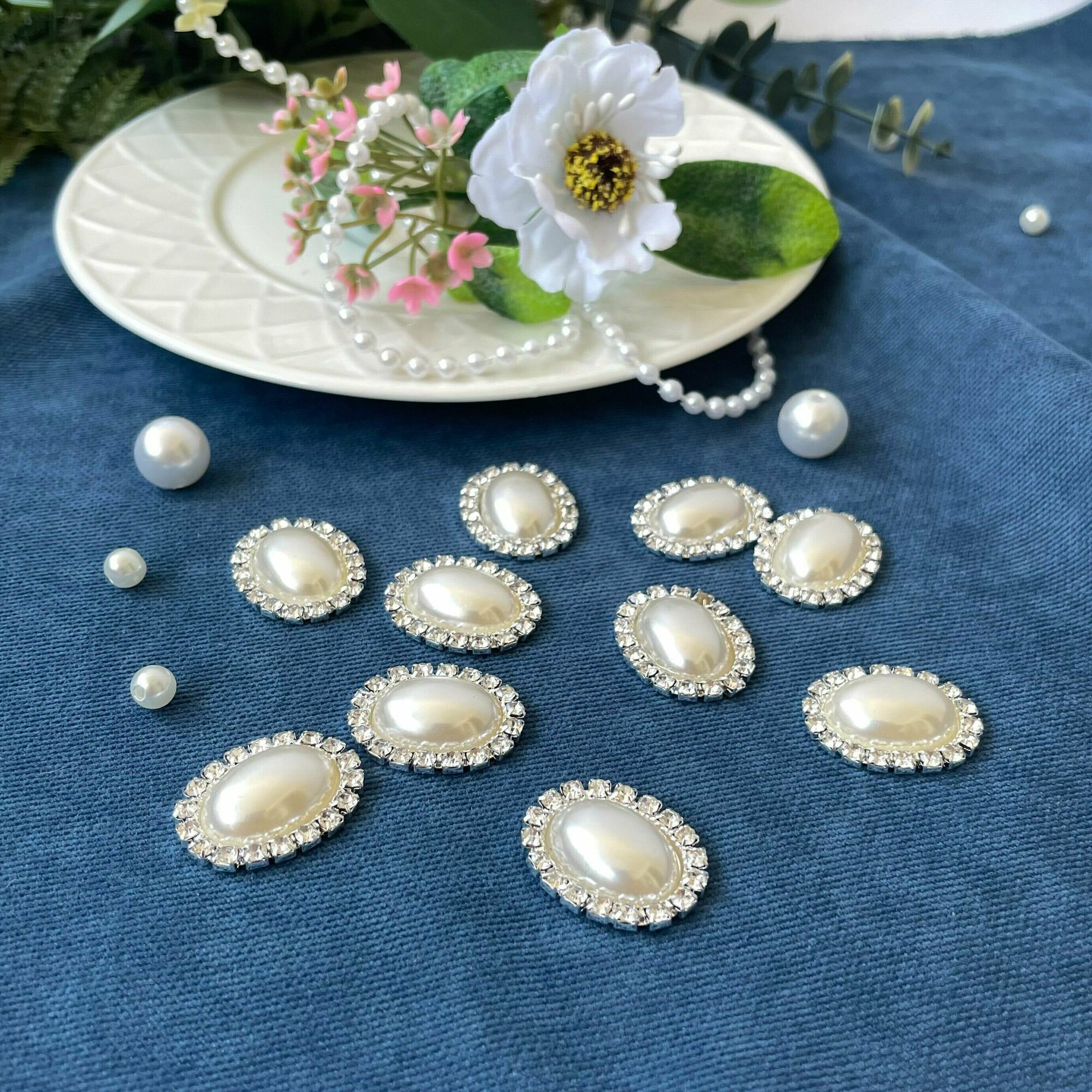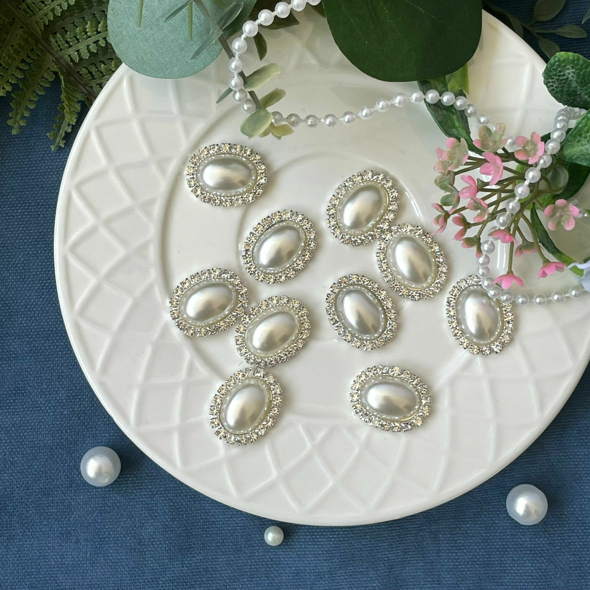 Кабошон - украшение со стразами и жемчужиной в форме овала, цвет белый, 24*16 мм, пластиковое 20 шт.