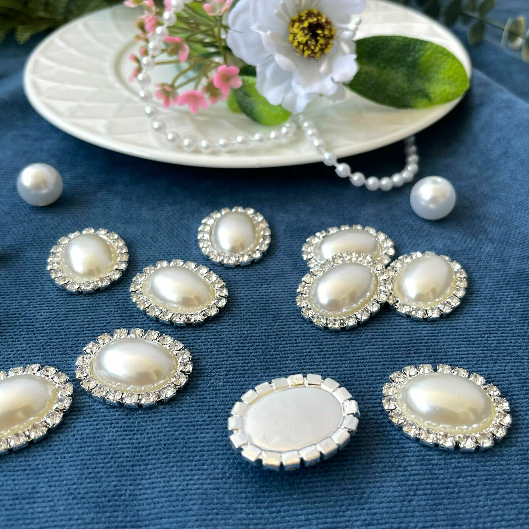 Кабошоны ювелирные со стразами и жемчугом, овальное, 30*25 мм, металлическое, набор 5 шт.