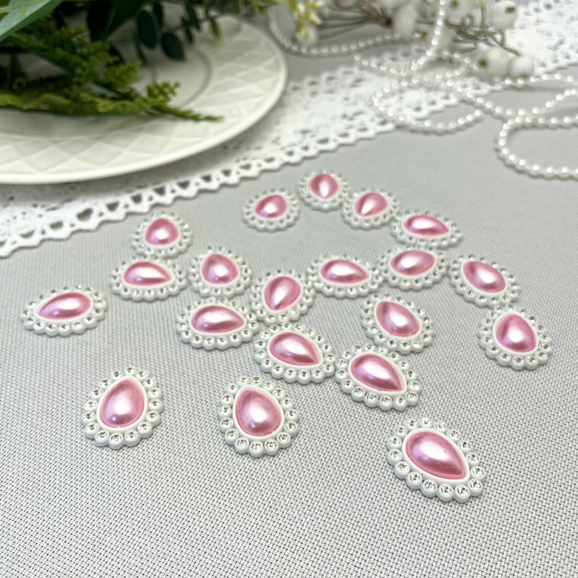 СохранитьКабошон - украшение со стразами и жемчужиной в форме капли, цвет розовый, 22*18 мм, пластиковое 20 шт. интересное: