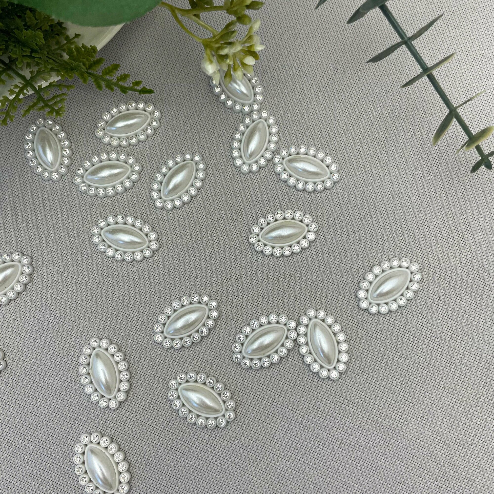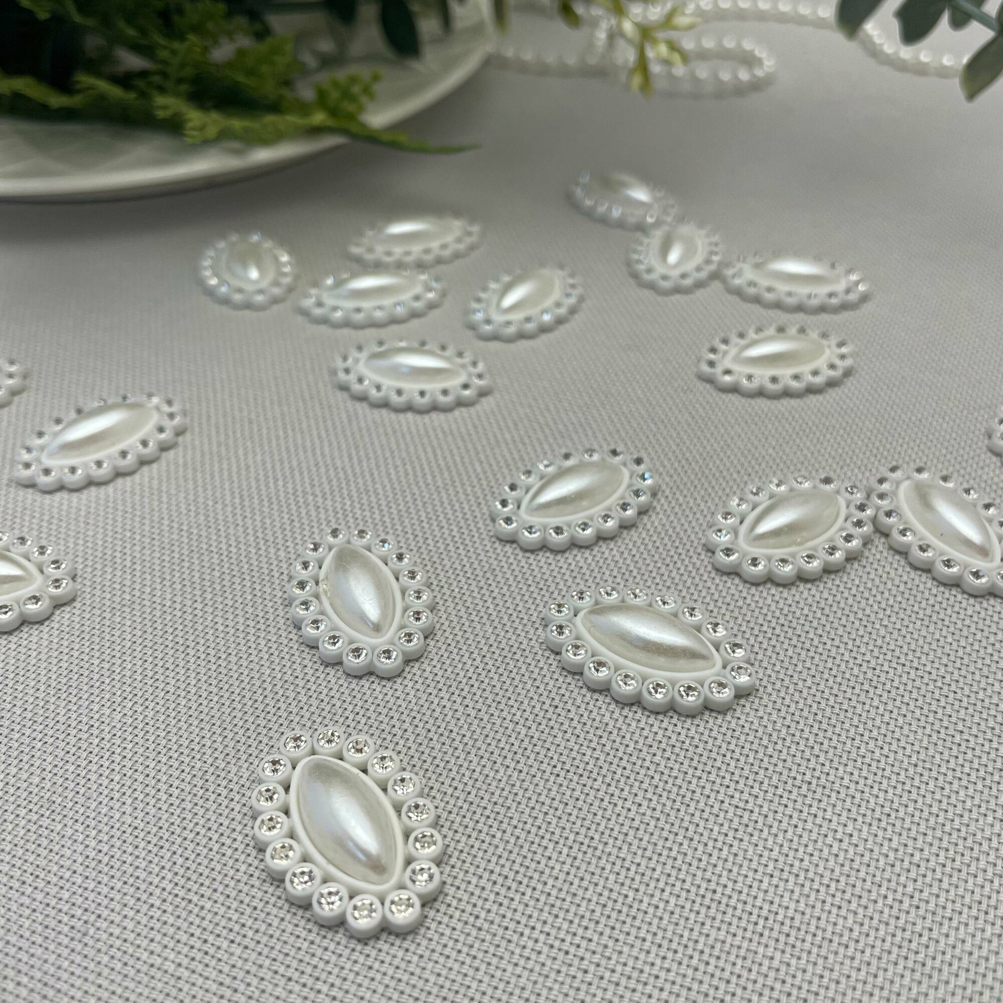 СохранитьКабошон - украшение со стразами и жемчужиной в форме овала, цвет белый, 24*16 мм, пластиковое 20 шт. интересное: