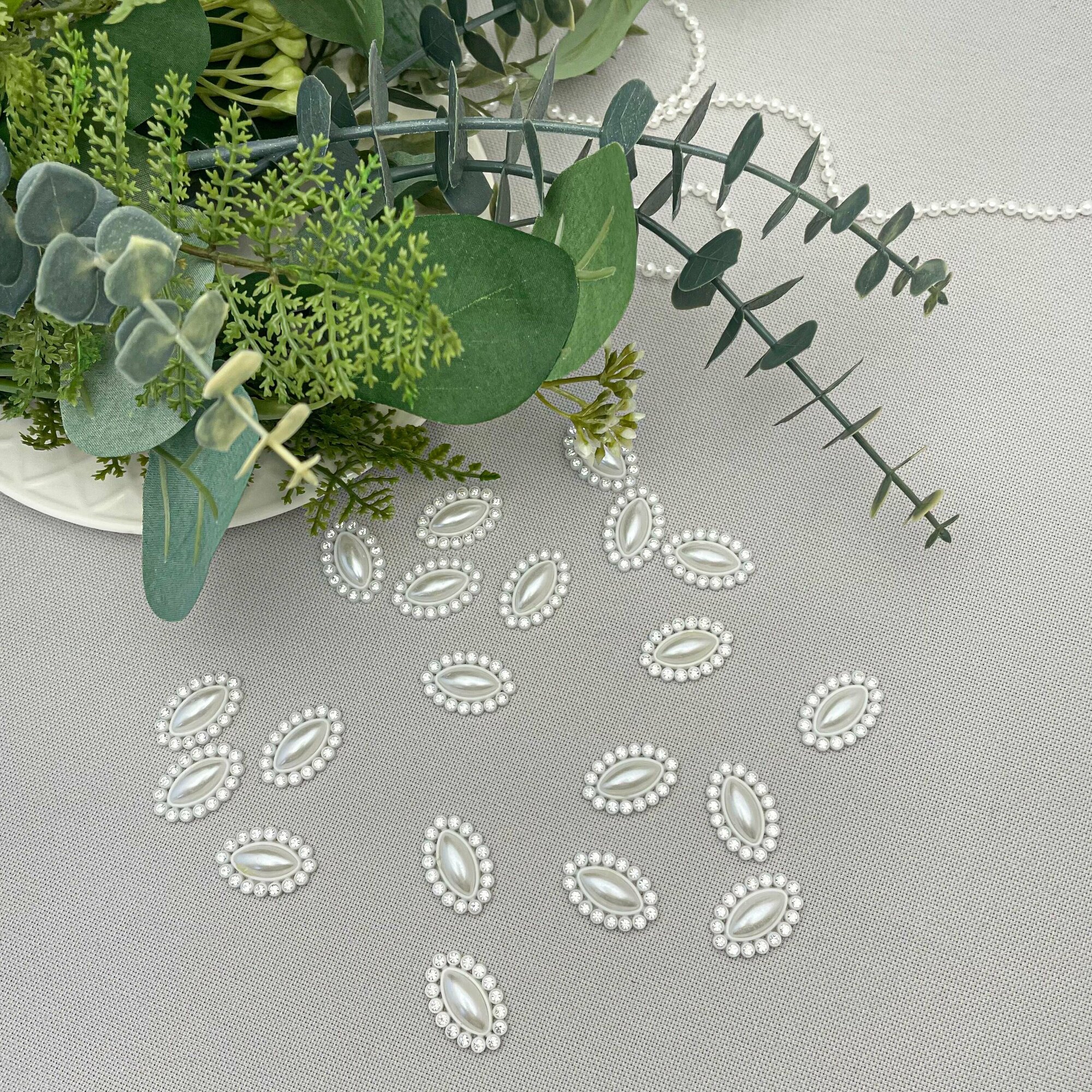 Купить Кабошон - украшение со стразами и жемчужиной в форме овала, цвет белый, 24*16 мм, пластиковое 20 шт.