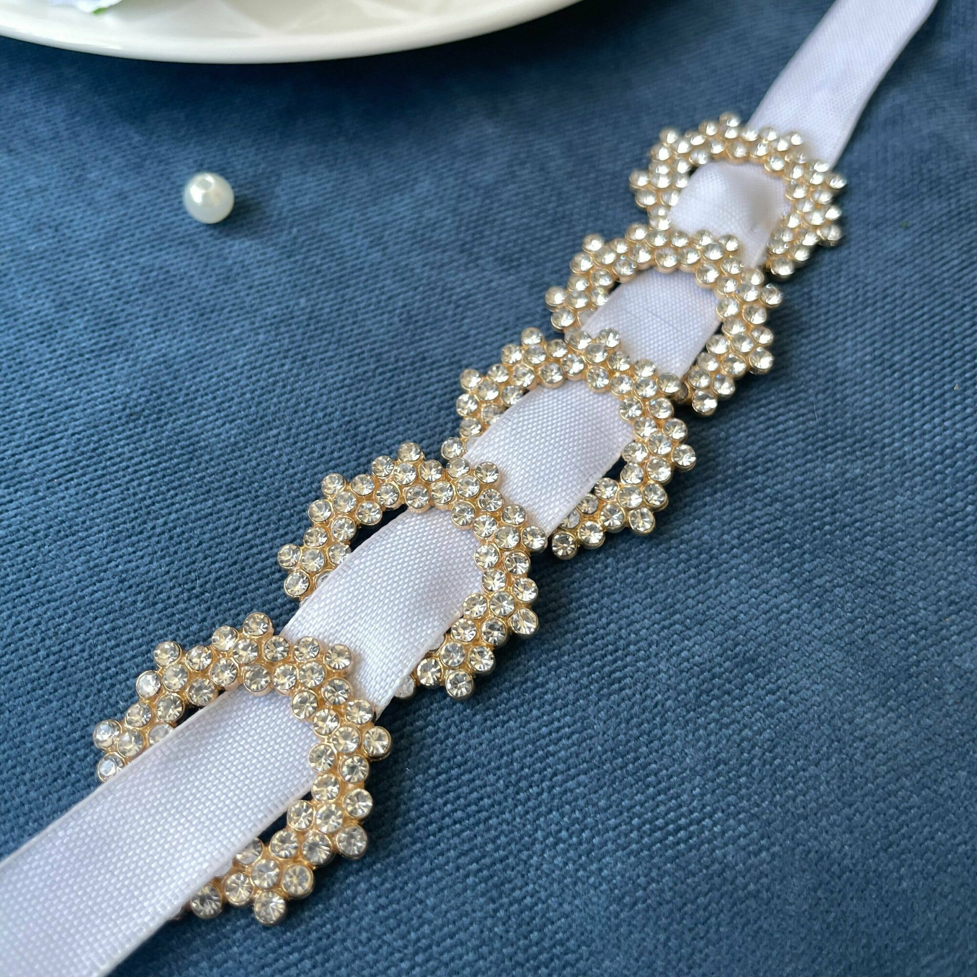 Кабошон - украшение со стразами и жемчужиной в форме овала, цвет белый, 2*2,5 см, металл, 10 шт.