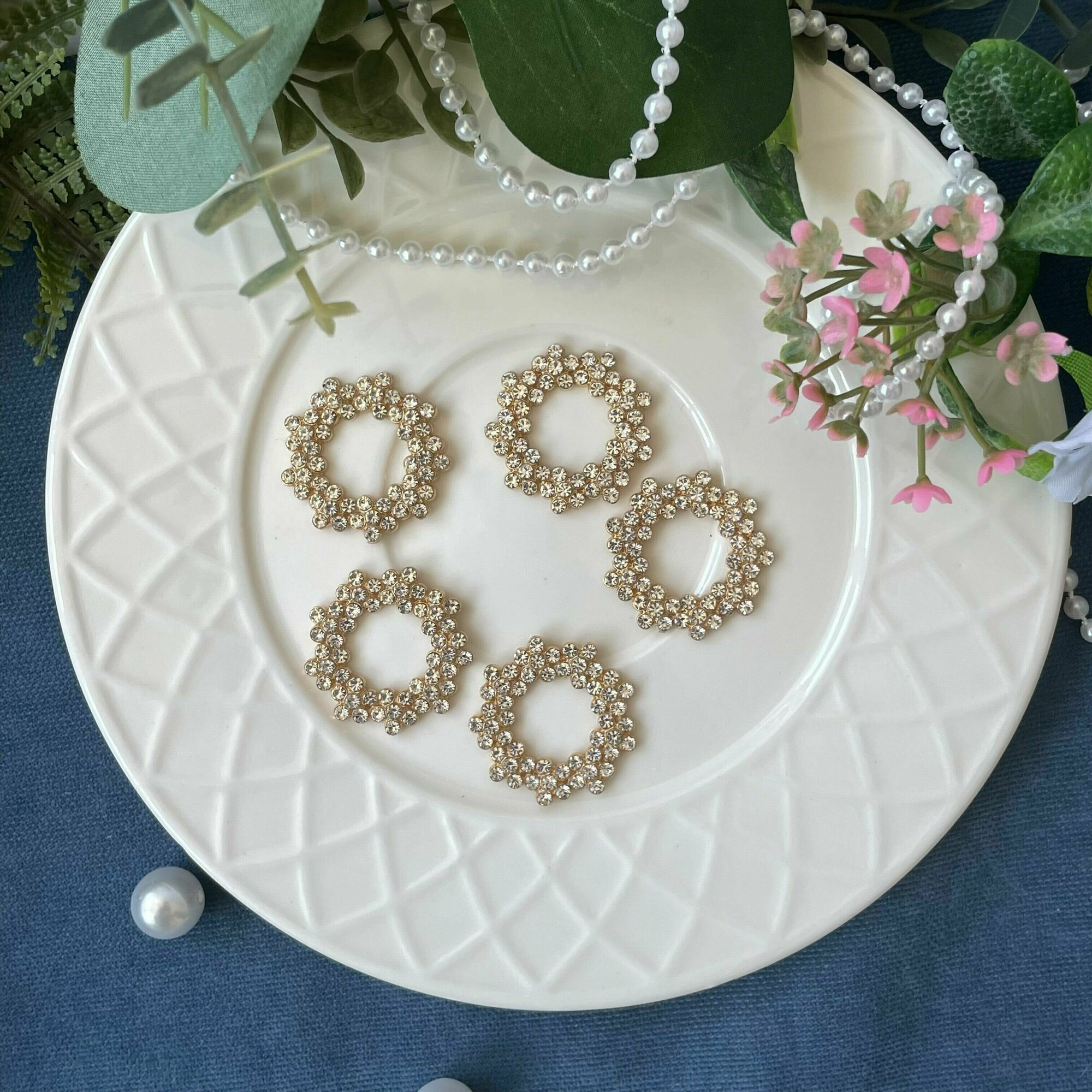 Купить Кабошон - Украшение со стразами декоративное, металлическое, золотое, 2,7*2,7 см, набор 5 шт.