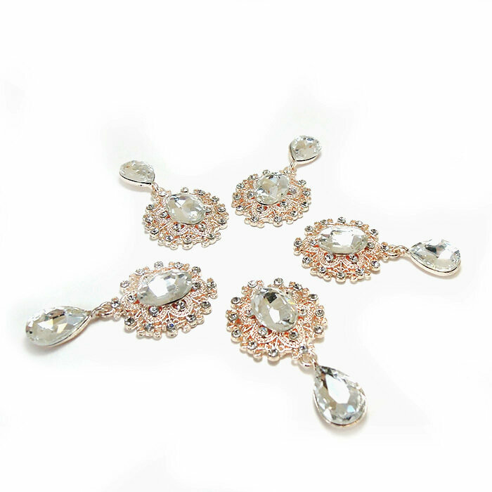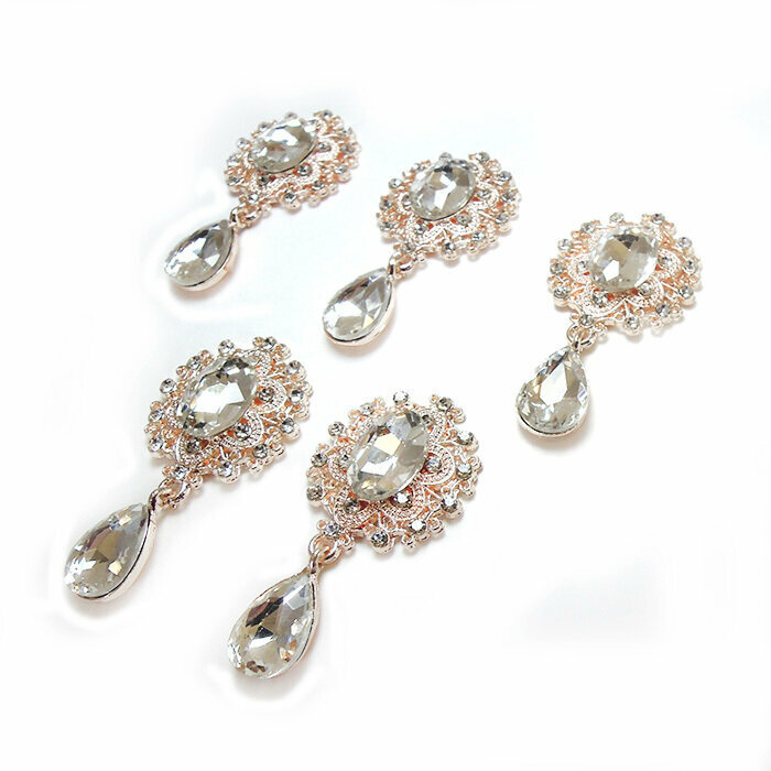 Купить Кабошоны ювелирные со стразами и подвеской капля, прозрачные/золото, набор 5 шт.