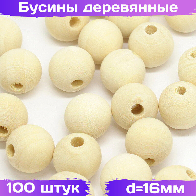 Купить Бусины деревянные круглые без покрытия "Керри", цвет бежевый, диаметр около 16 мм, 100 шт, ВсемБусики