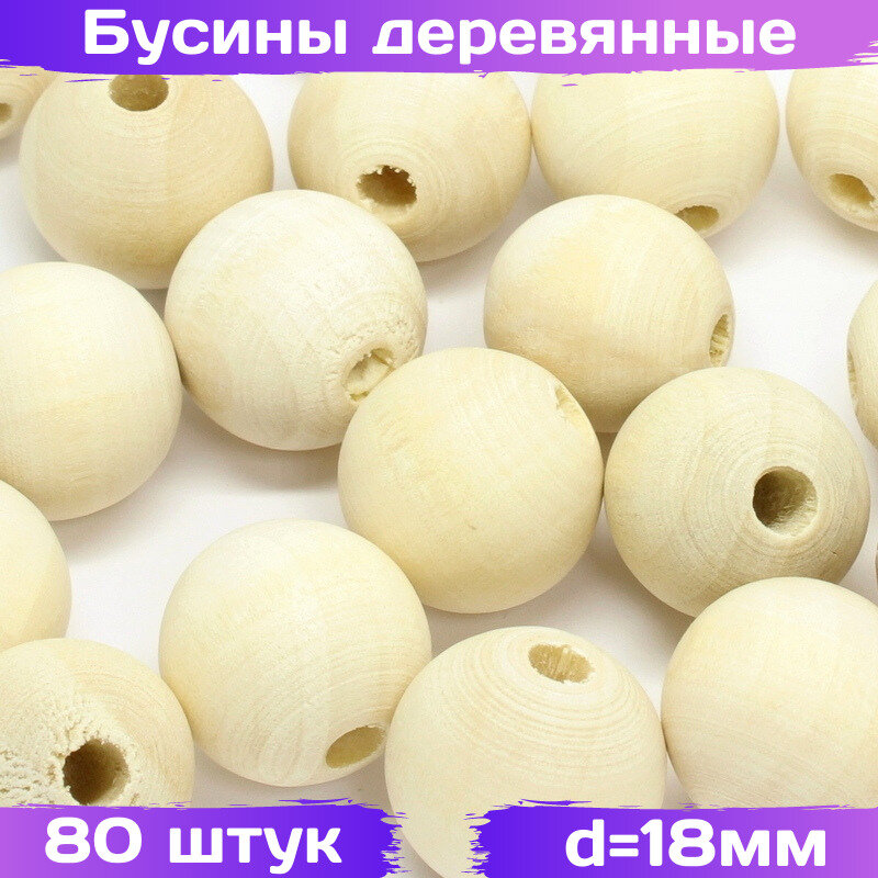 СохранитьБусины деревянные круглые без покрытия "Керри", цвет бежевый, диаметр около 18 мм, 80 шт, ВсемБусики интересное:
