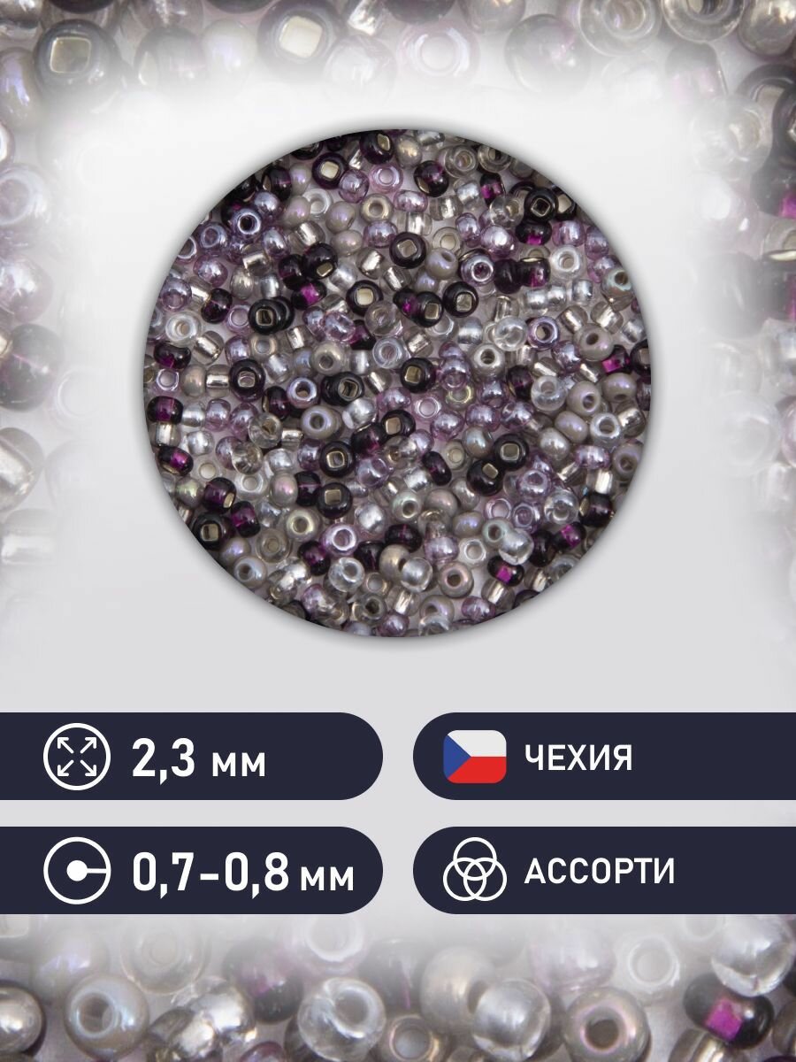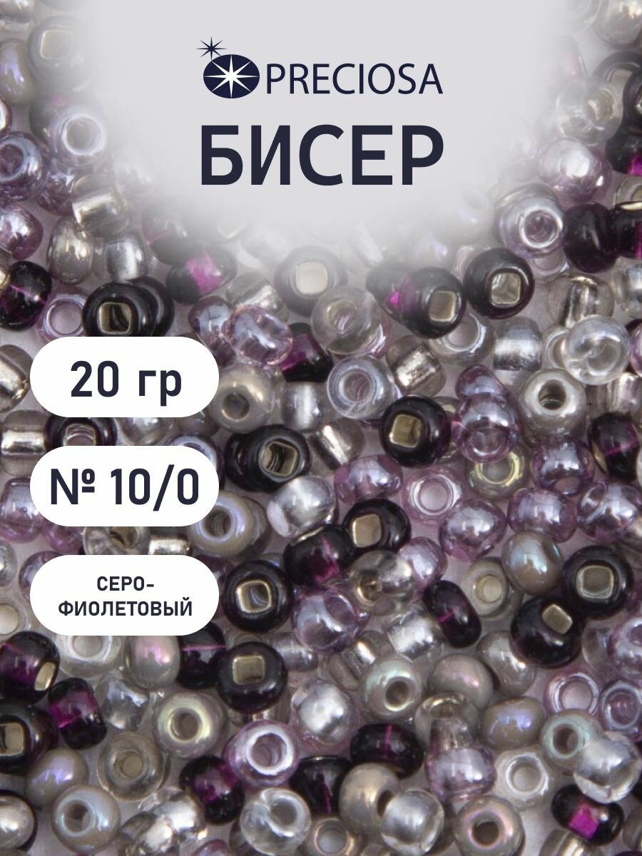 Купить Бисер Preciosa 10/0 (2,3 мм), 20 г, 5 цветов, ассорти № 2 (серо-фиолетовый)