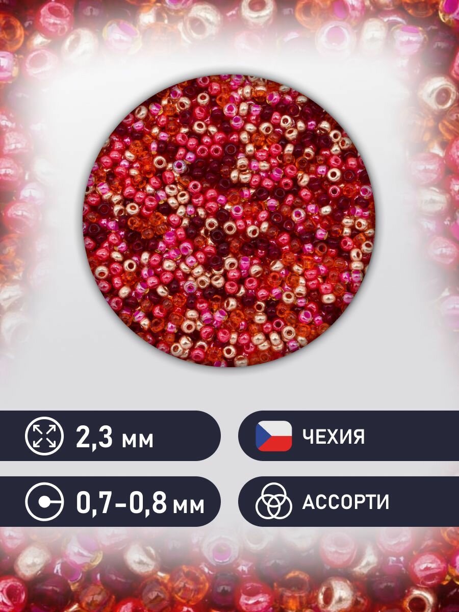 Купить Бисер Preciosa 10/0 (2,3 мм), 20 г, 5 цветов, ассорти № 5 (красный)