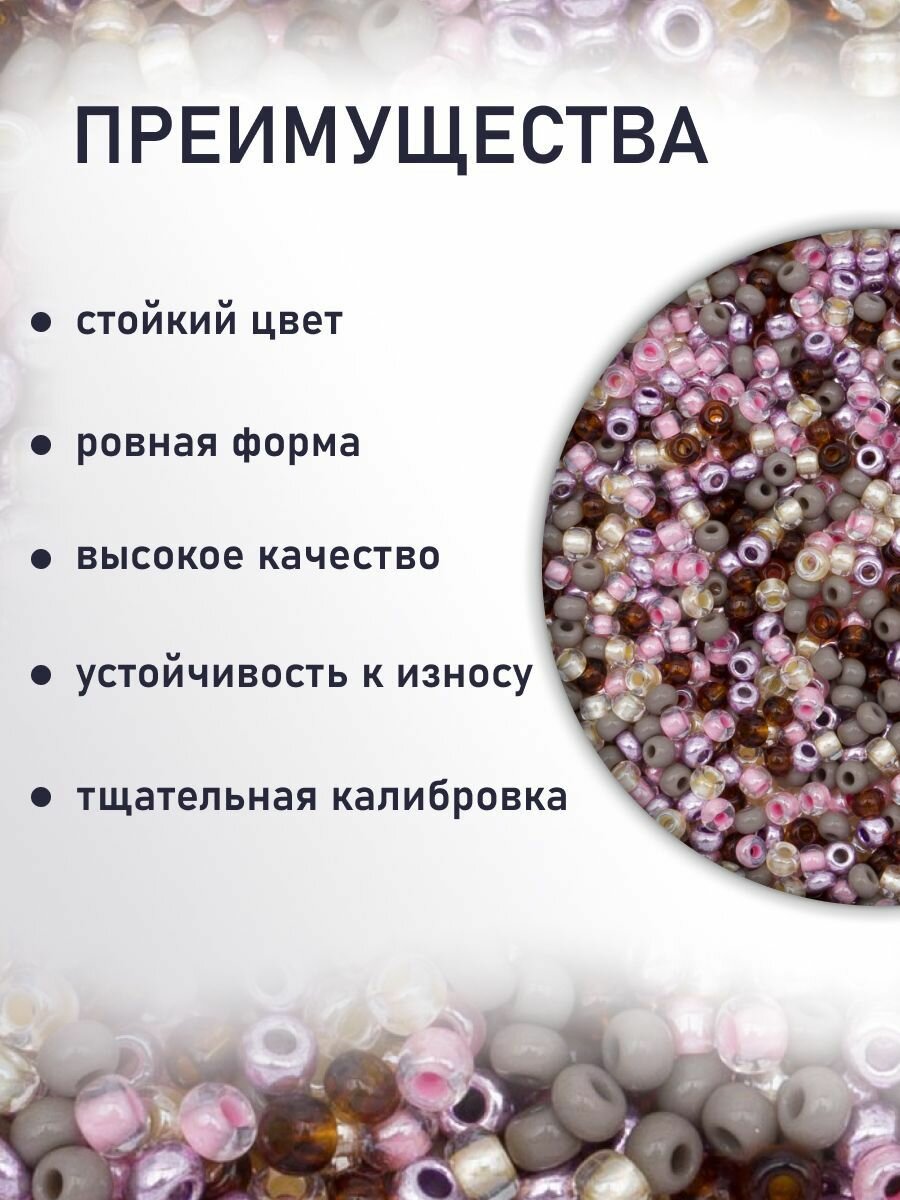 Бисер Preciosa 10/0 (2,3 мм), 20 г, 5 цветов, ассорти № 2 (серо-фиолетовый)