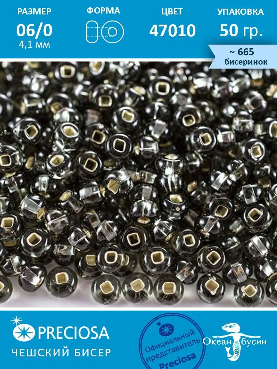 Бисер чешский PRECIOSA круглый 6/0 43020 серый непрозрачный, 50г