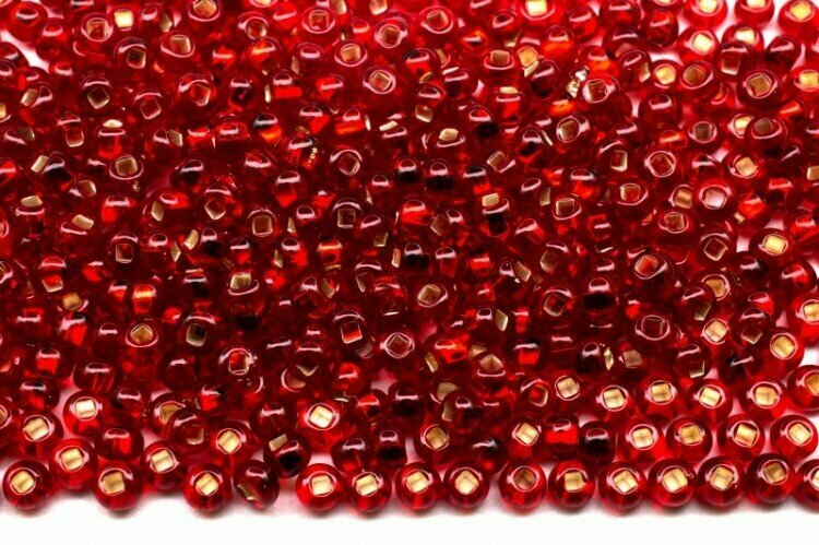 Бисер чешский PRECIOSA круглый 6/0 97120 бордовый, серебряная линия внутри, 50г