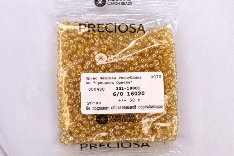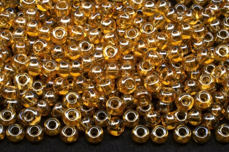 Бисер чешский PRECIOSA круглый 6/0 16020 янтарный прозрачный блестящий, 50г
