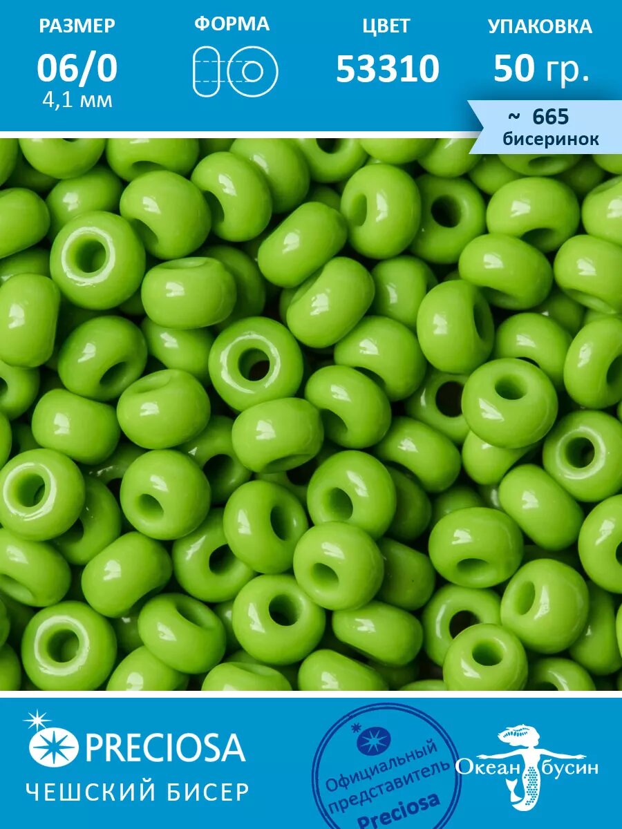 Бисер чешский PRECIOSA круглый 6/0 53210 зеленый непрозрачный, 50г