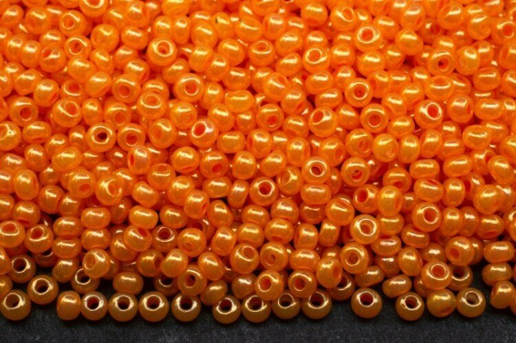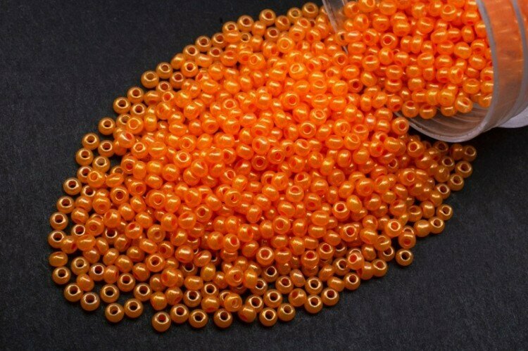 Бисер Чехия Preciosa, 86060, стекло, прозрачный блестящий, 10/0, круглое отверстие, 50 г, оранжевый