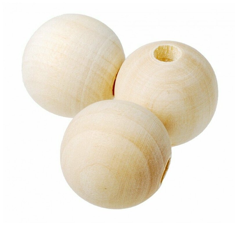 Набор деревянных бусин от ТМ "Белоснежка" / Диаметр 20 мм. / Количество 40 шт. / Диаметр отверстия 4,8 мм.