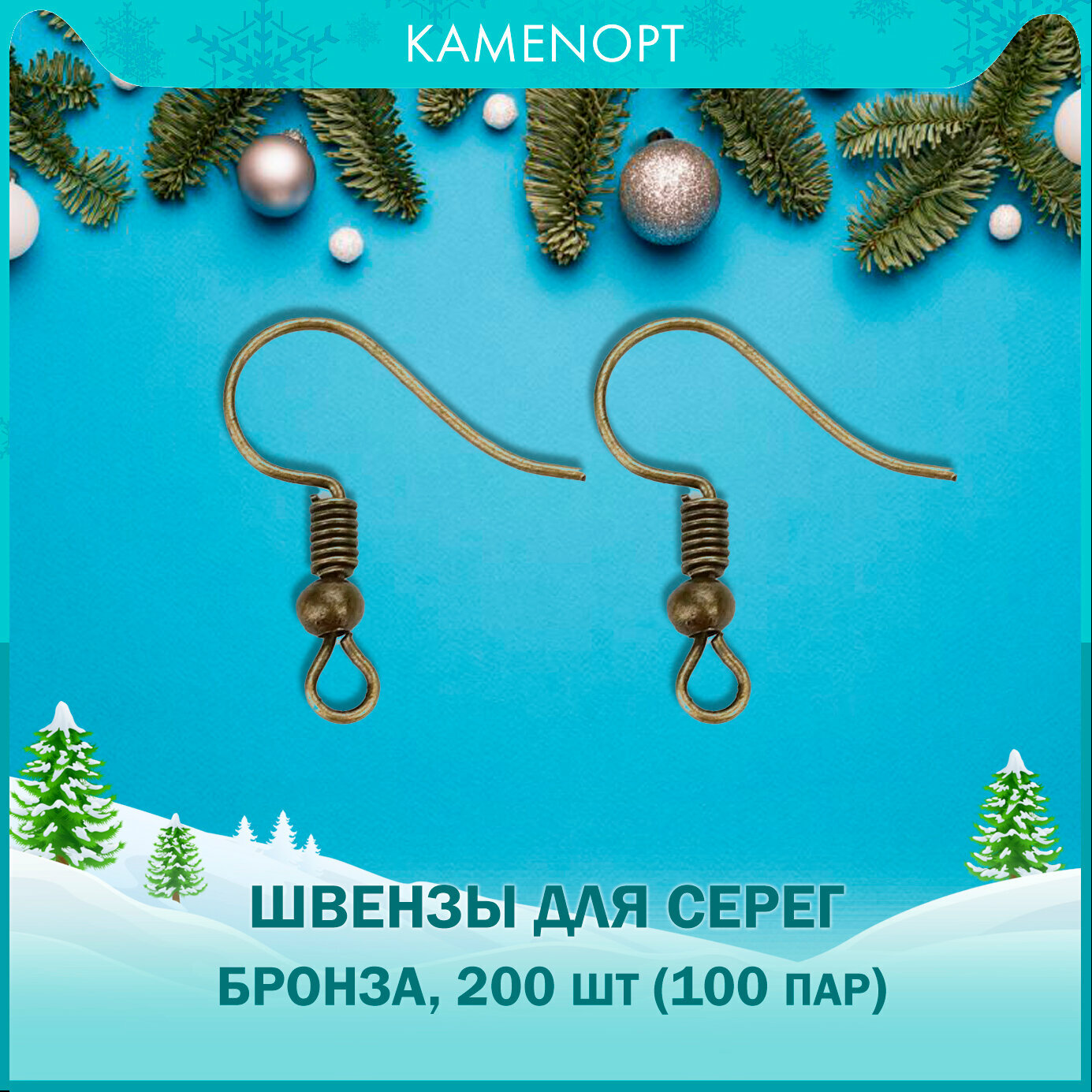 200 шт (100 пар) Основы для серег (Швензы) Крючоки 18х19 мм, цвет: Бронза