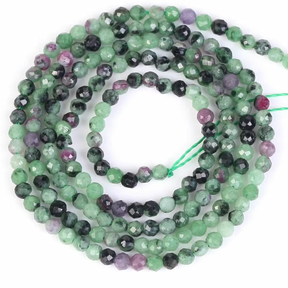 Купить Бусины из натурального камня Цоизит граненые 2 мм, на нитке 38 см около 190 шт
