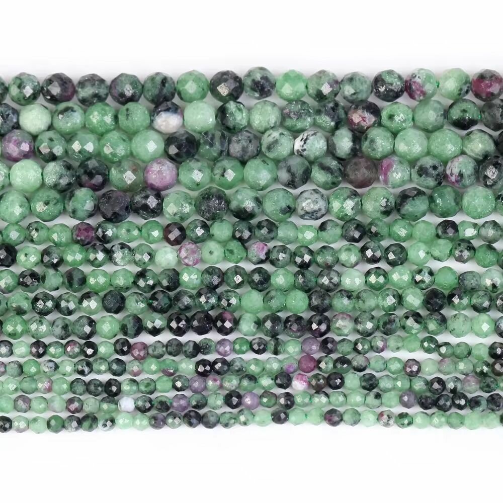 Бусины из натурального камня Цоизит граненые 2 мм, на нитке 38 см около 190 шт