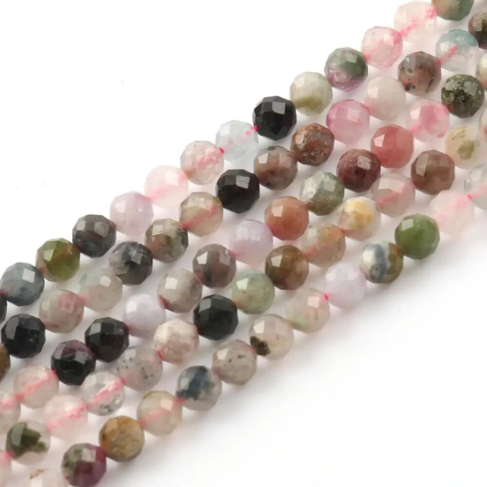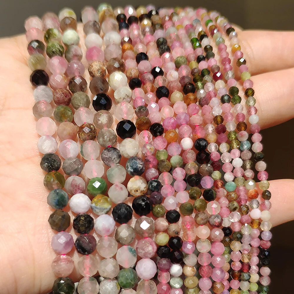 Турмалин бусины для рукоделия, шарик граненый 2 мм, около 190 шт, натуральный камень