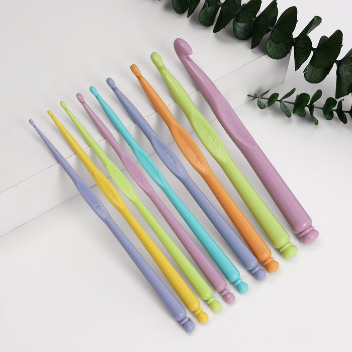 Наб крючков для вяз 9шт пластик 15см d2,5/3,0/4,0/4,5/5,0/5,5/6,5/8,0/10,0мм разноцвет АУ 1161168 интересное: