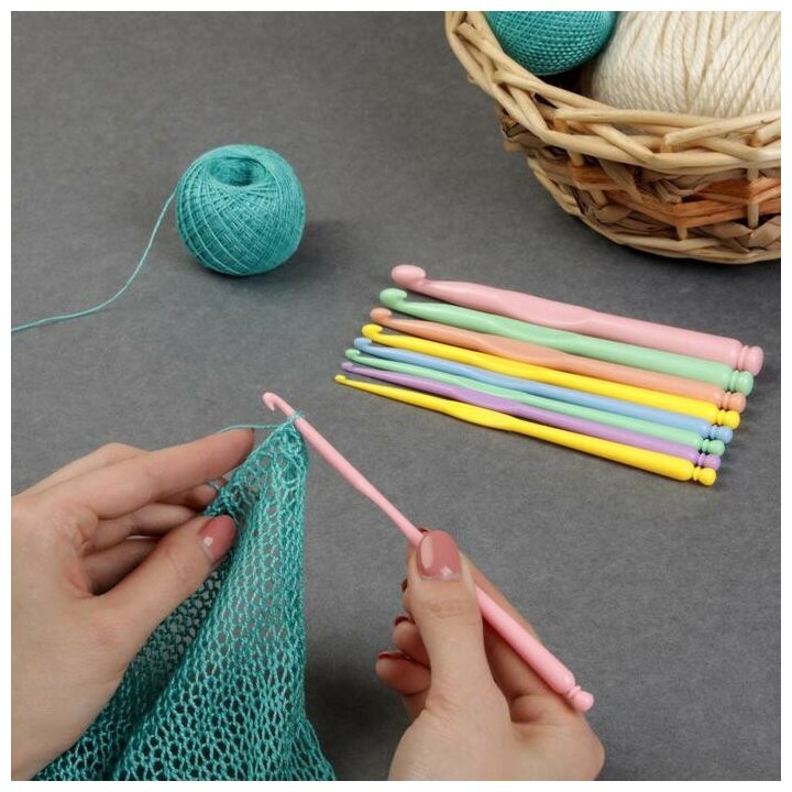 Купить Наб крючков для вяз 9шт пластик 15см d2,5/3,0/4,0/4,5/5,0/5,5/6,5/8,0/10,0мм разноцвет АУ 1161168