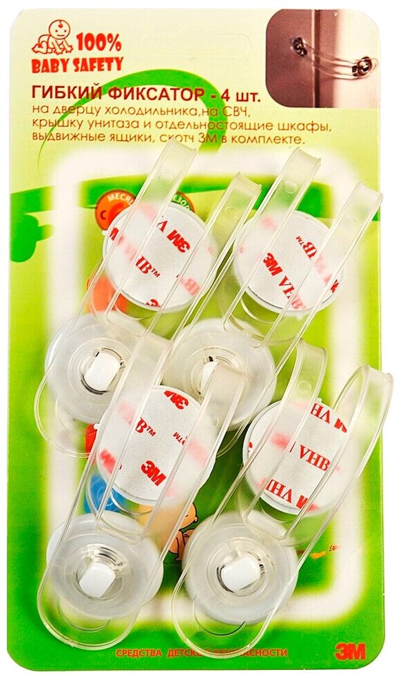 Гибкий фиксатор СВЧ Холодильника, Блокиратор дверей и ящиков, крышки унитаза Baby Safety 4 шт. Прозрачные Белый, скотч в комплекте интересное: