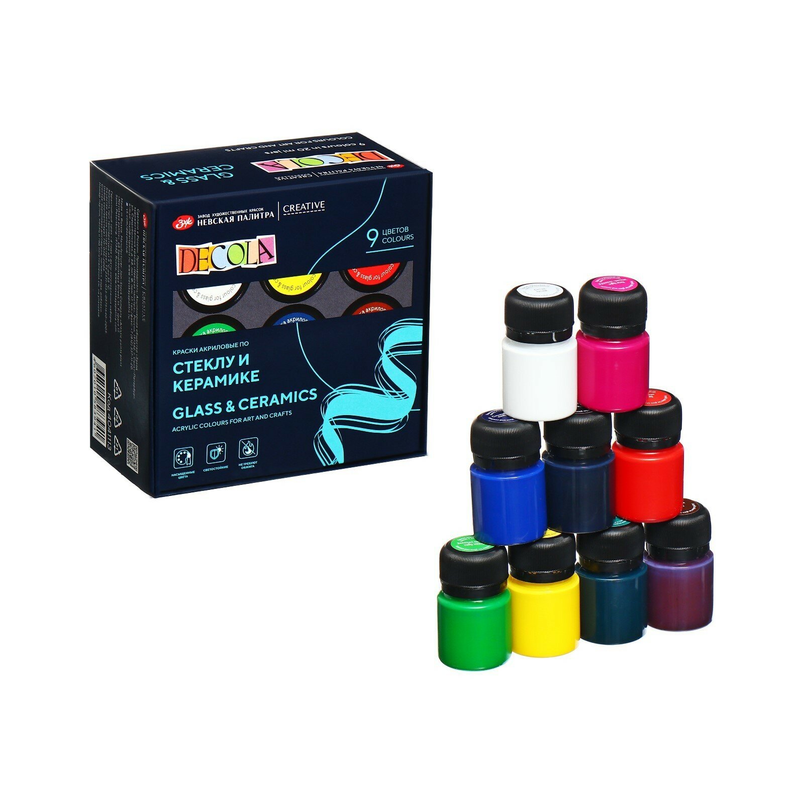 Купить DECOLA / Акриловые краски по стеклу и керамике, 9 цветов по 20 мл, ЗХК Невская палитра