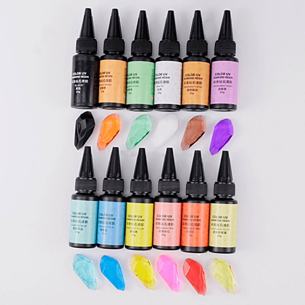 Купить УФ эпоксидная смола для творчества. Набор 12 цветов и UV лампа
