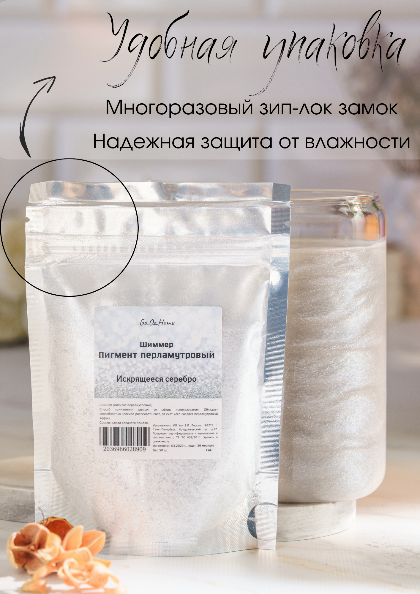 Шиммер. Пигмент перламутровый серебряный "Искрящееся серебро". 50 гр. интересное: