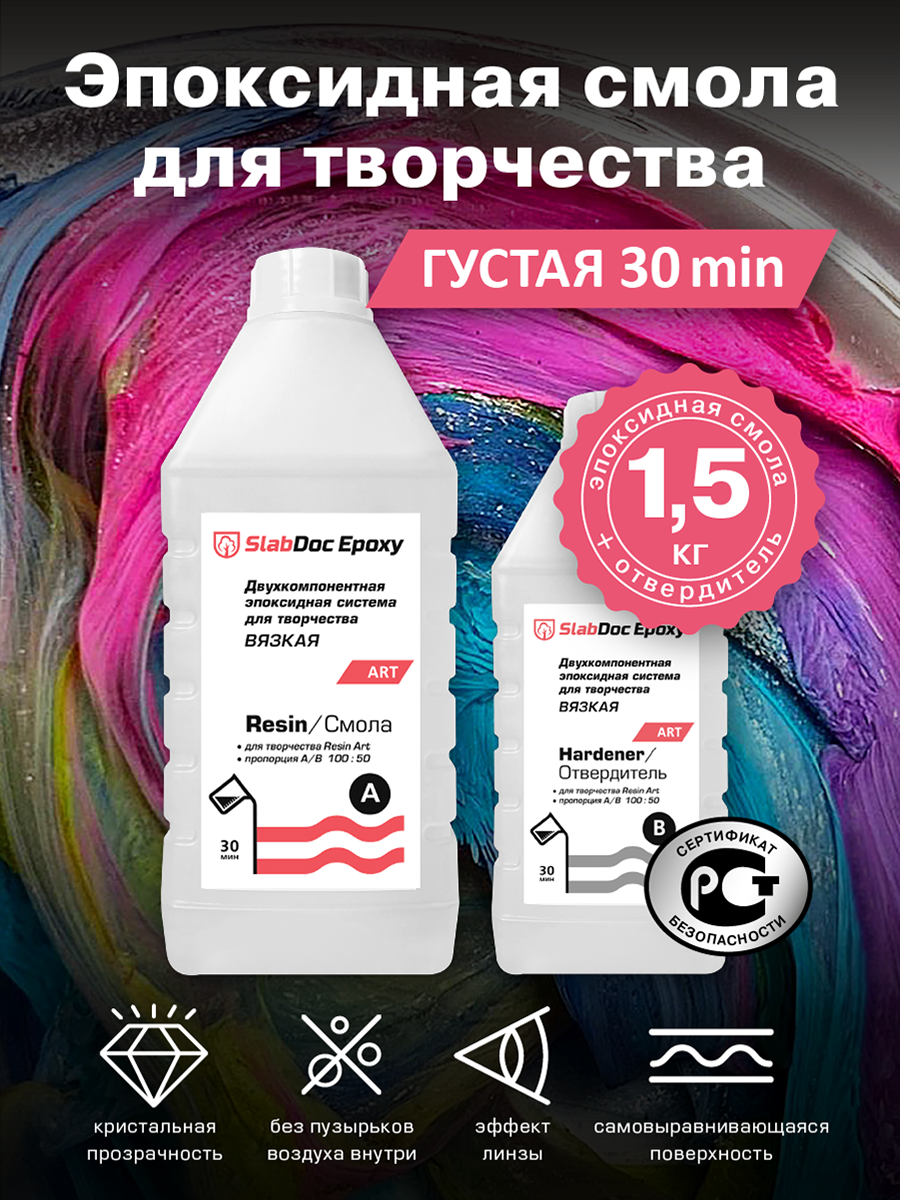 Купить Эпоксидная смола для творчества SlabDoc Epoxy Art вязкая 30 минут, 1.5 кг, прозрачная