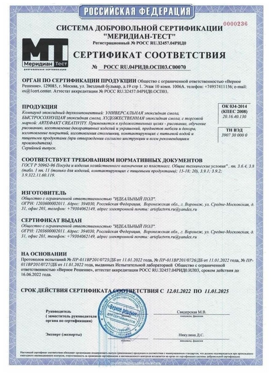 | Тип эпоксидной смолы | универсальная |