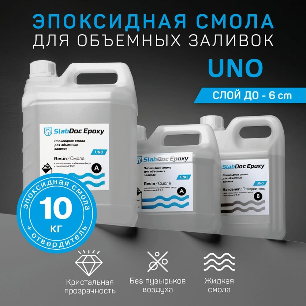 Ниже Вы можете прочитать отзывы на Эпоксидная смола для объемных заливок SlabDoc Epoxy UNO - 10 кг, прозрачная, ознакомится с подробными характеристиками, посмотреть интересные обзоры и фотографии на Эпоксидная смола для объемных заливок SlabDoc Epoxy UNO - 10 кг, прозрачная.