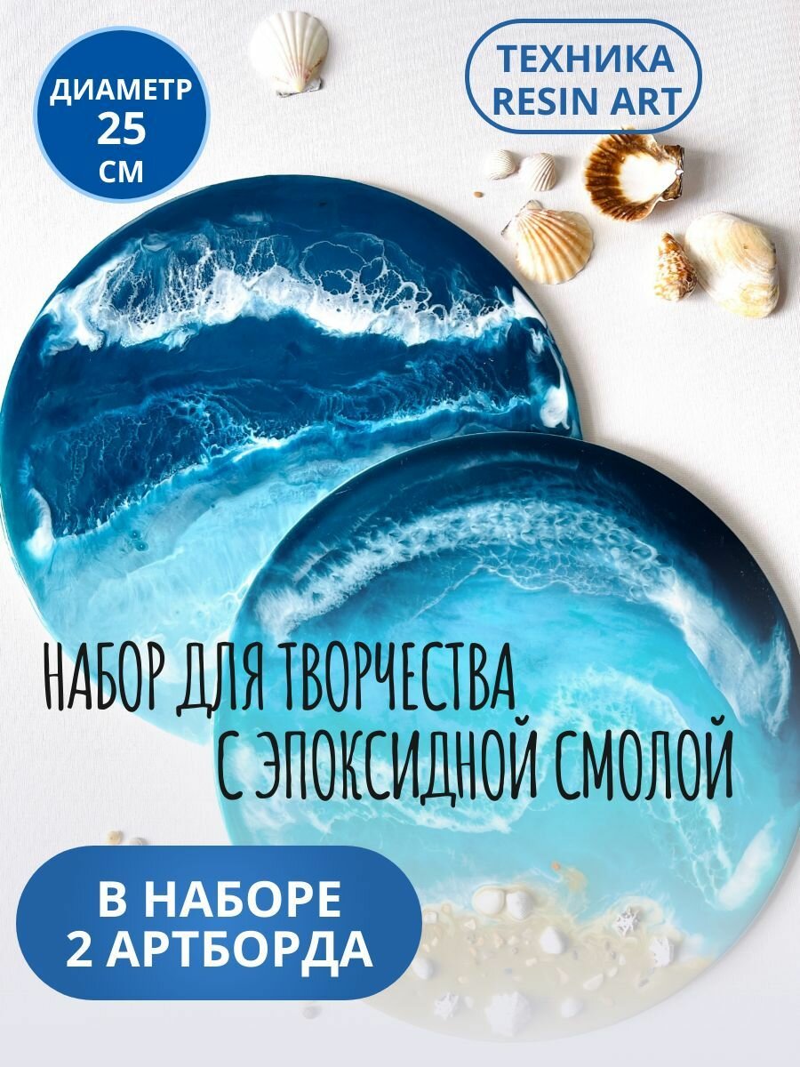 Купить Творческий набор для рисования эпоксидной смолой в технике Resin Art "Море". Подарочный набор (2 круглых артборда, 25 см)