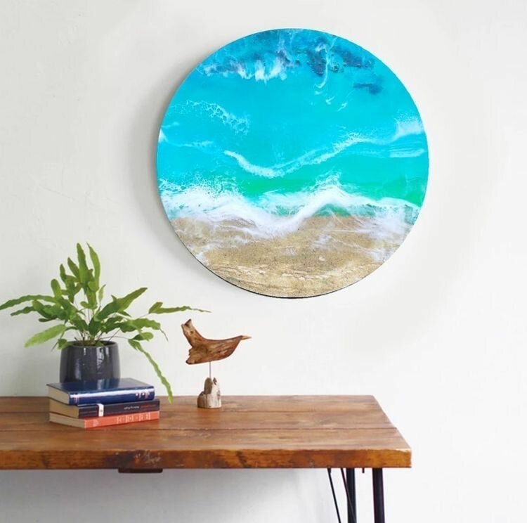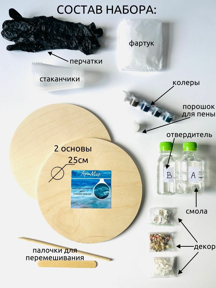 Творческий набор для рисования эпоксидной смолой в технике Resin Art "Море". Подарочный набор (2 круглых артборда, 25 см) интересное: