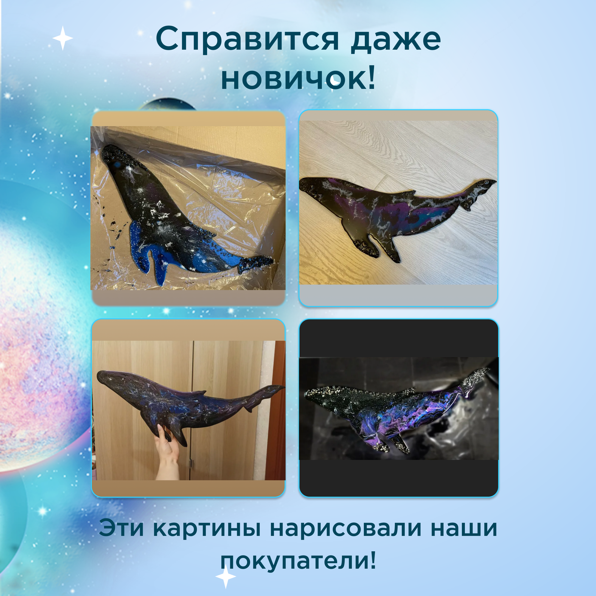 Купить Творческий набор для рисования эпоксидной смолой в технике Resin Art "Кит космос". Домашнее творчество для взрослых и детей. Арт терапия.