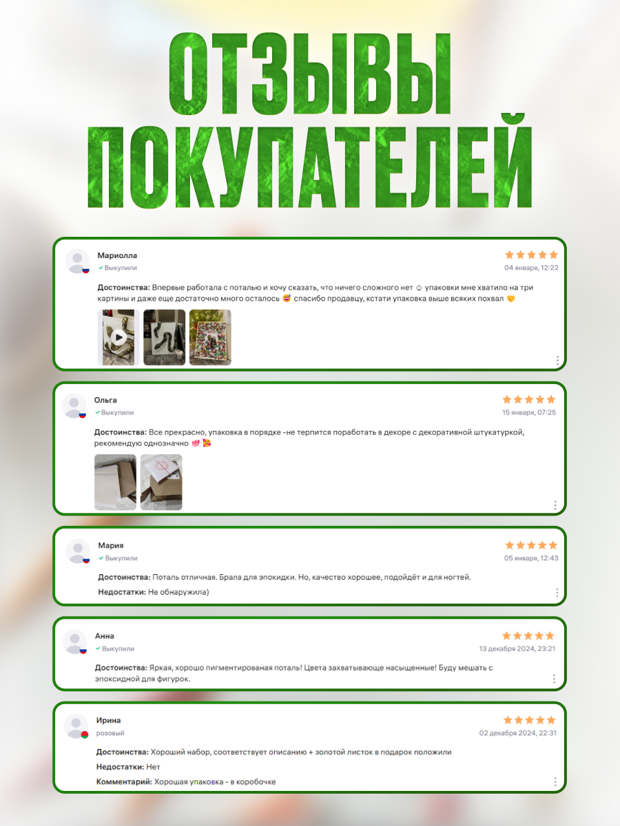 Ниже Вы можете прочитать отзывы на Поталь листовая зеленый 100листов, ознакомится с подробными характеристиками, посмотреть интересные обзоры и фотографии на Поталь листовая зеленый 100листов.