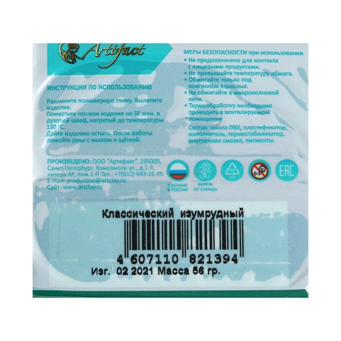 СохранитьПолимерная глина Артефакт арт.АФ.821394/0283 классический цв.изумрудный 56 г интересное: