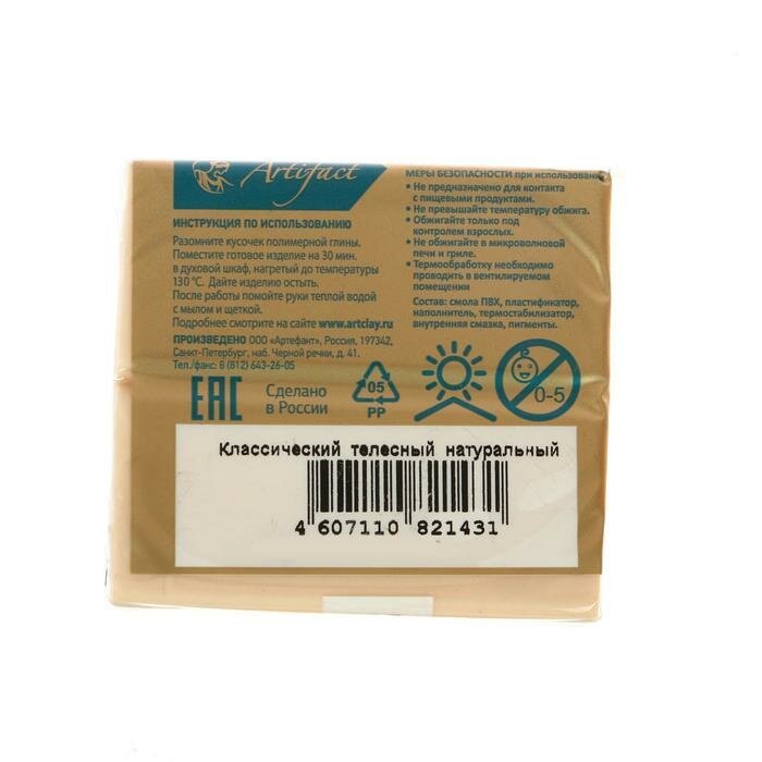 Полимерная глина запекаемая Артефакт Классическая, брус 50-56 г (105 классический телесный натуральный)