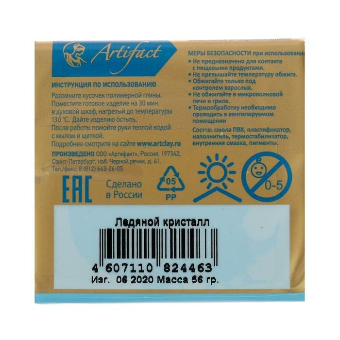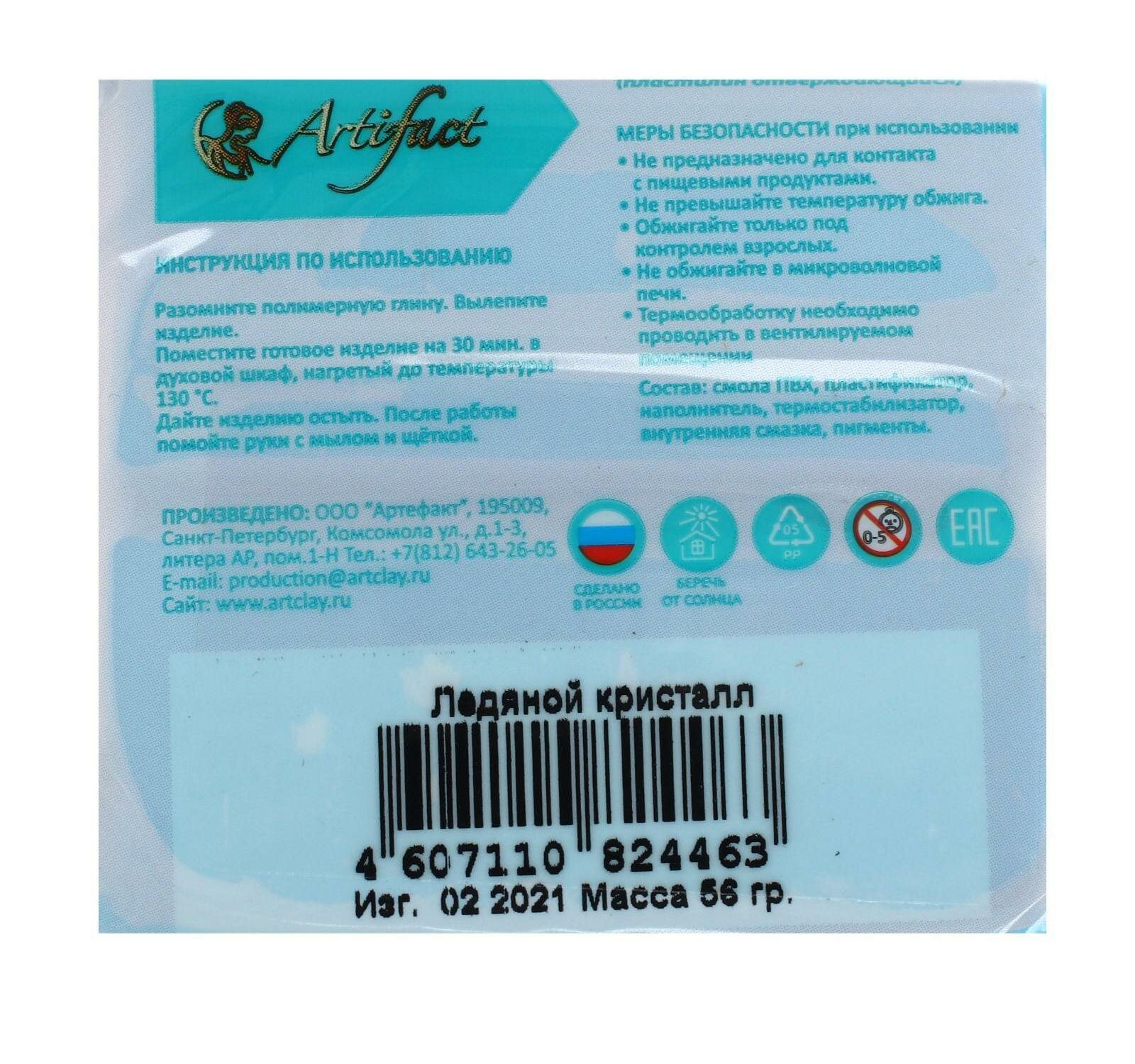 Пластика для запекания Artifact брус глина для лепки и творчества 56 г 166 ледяной кристалл 1шт!
