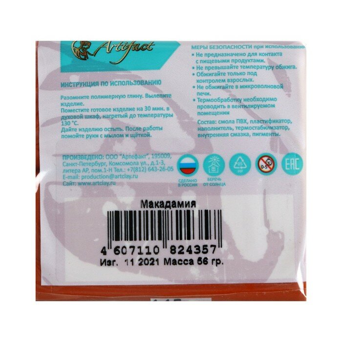 СохранитьПолимерная глина запекаемая Артефакт Классическая, брус 50-56 г (145 макадамия) интересное: