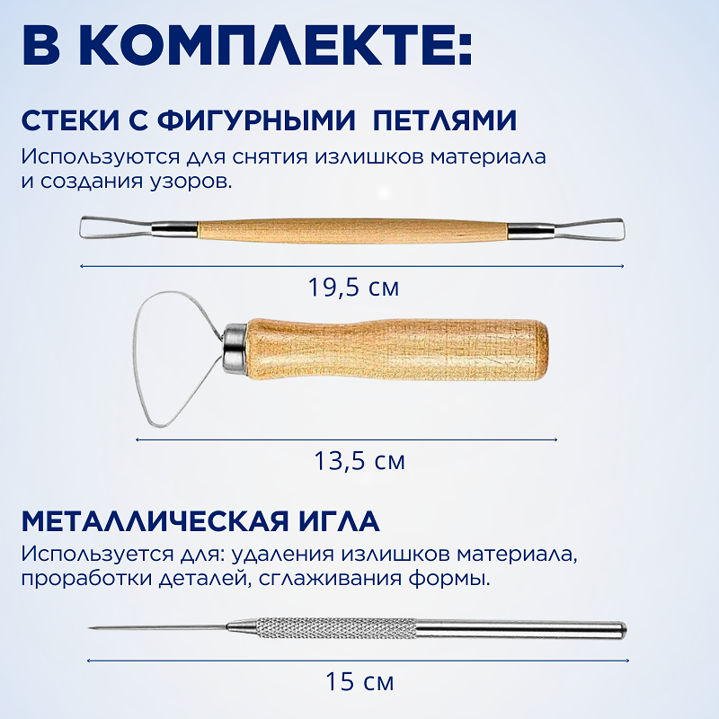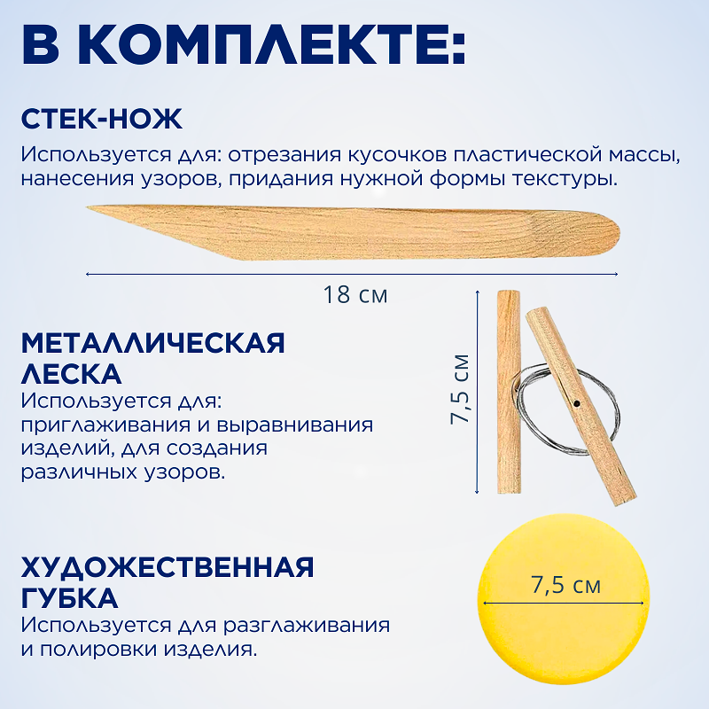 | Подробная комплектация | Инструменты для лепки и моделирования - 8 шт |